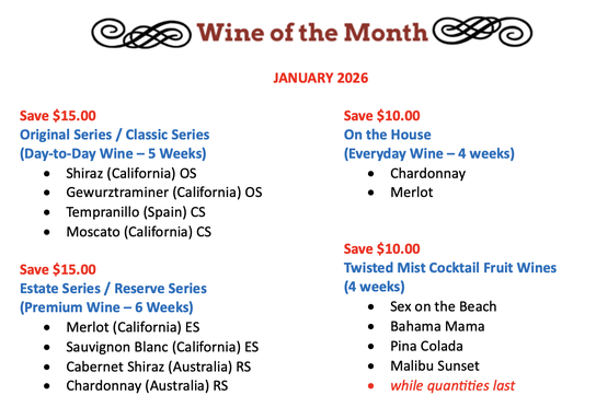 As we kick off a fresh calendar, we want to thank you for supporting our locally owned shop and for choosing to craft your wine with us. Every batch you make keeps our little winemaking community thriving—and your wine rack stocked, which is equally important.